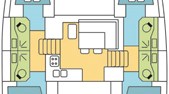 | Schiffsbreite6.76 m | Tiefgang0.00 m | Motor2 x 45 hp | Kraftstoffkapazität0 l | Wasserkapazität0 l | Nasszellen4 |