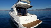 Flybridge Console cover Sun deck cushions Bimini top Chain locker Anchor electric winch Spare anchor Teakdeck Cockpit light Deckshower Swimladder Swim platform Teakdeck on platform Fishing rod holders Fittings and stainless steel hand rails Fenders Cockpit table Complete mooring equipment Boathook