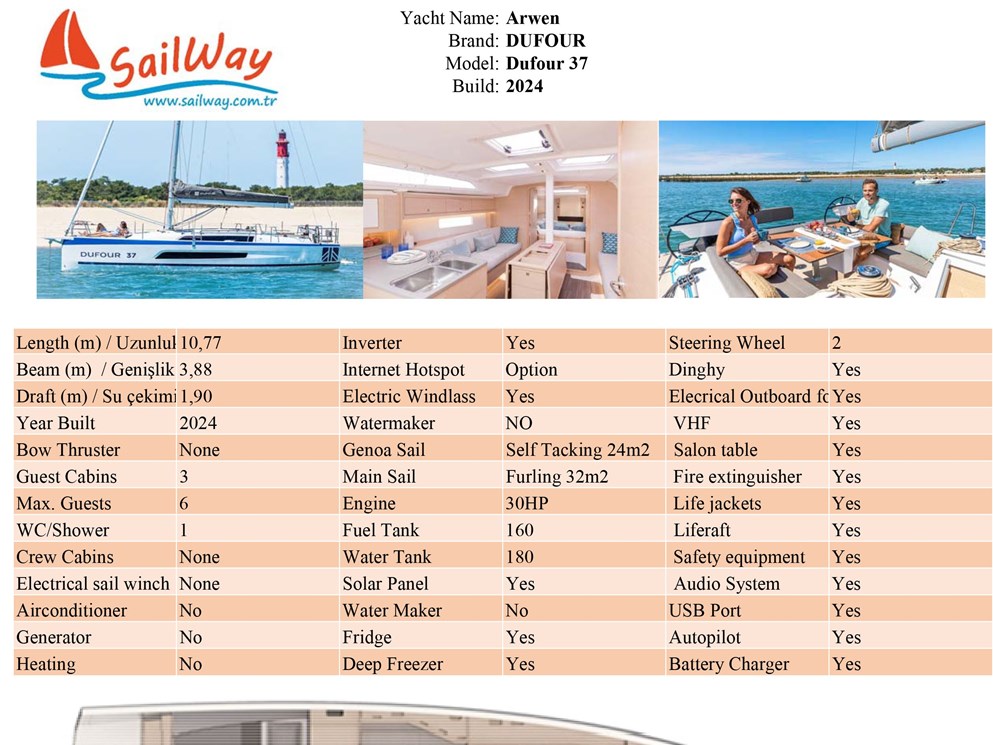 El 37 es un gran barco de vela disponibles alquiler de TURKEY en Marina Adaköy Marina, Marmaris. Con 3 cabañas que pueden alojar huéspedes. Esto hace que sea una opción ideal para grupos que deseen alquilar este barco de vela. Reservas online a través del portal para una gran vacaciones de vela TURKEY.
