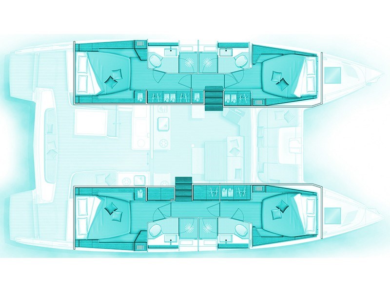 | Beam7.96 m | Draught1.30 m | Engine2x45 HP | Fuel capacity520 l | Water capacity600 l | Heads4 |