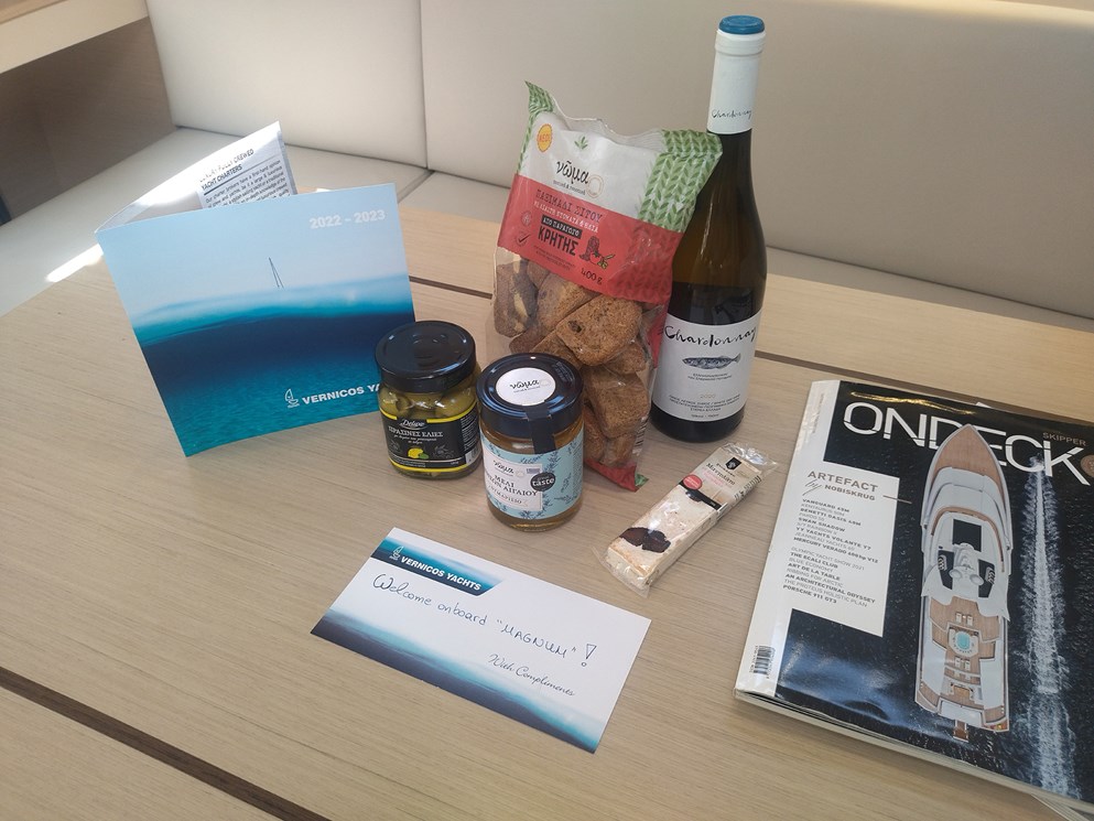 | Welcome Pack: welcome drink , welcome snack with traditional Greek products and bathroom amenities | 0.00 €/charter |