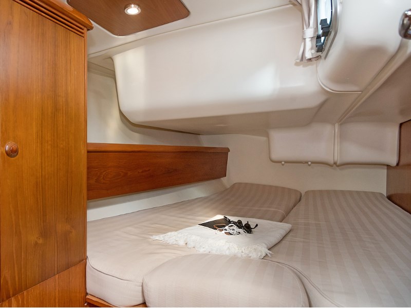 Sloop Genoa 2024 QUANTUM + Classic Full Batten Mainsail 2024 QUANTUM Battery Charger 60A, Double Berth in Saloon Radio-CD Stereo Shore Power Gas Cooker Wheel Hot Water Tiller Refrigerator Solar Panel 150 W Electrical Windlass Swim Platform Tender 2, 30m (2018) with outboard engine Yamaha 2.5HP (4 strokes) Mechanical Gangway Bimini Tools and Spares Sprayhood Swim Ladder LTC (12V) Autohelm ST60 Extended bow roller Full Safety Equipment Epirb Outboard engine 2,5HP Yamaha 4 cylinder 2018 ASM equipment Electric toilet + Holding tank 41lt Lazy Bag