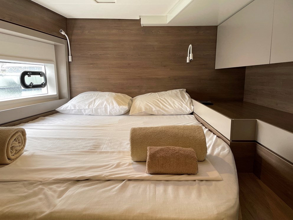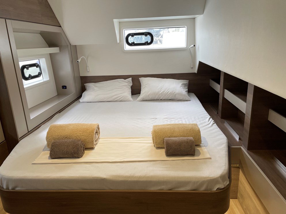4.6 je odličan izbor katamaran dostupna za najam u GREECE u Marini Alimos Marina, Athens. Sa 7 (5+2 Skipper) kabina za smještaj gostiju. Ovo je čini savršenim izborom za grupe zainteresirane za najam katamaran. Rezervirajte preko našeg on line charter portala svoj nezaboravni odmor u GREECE.