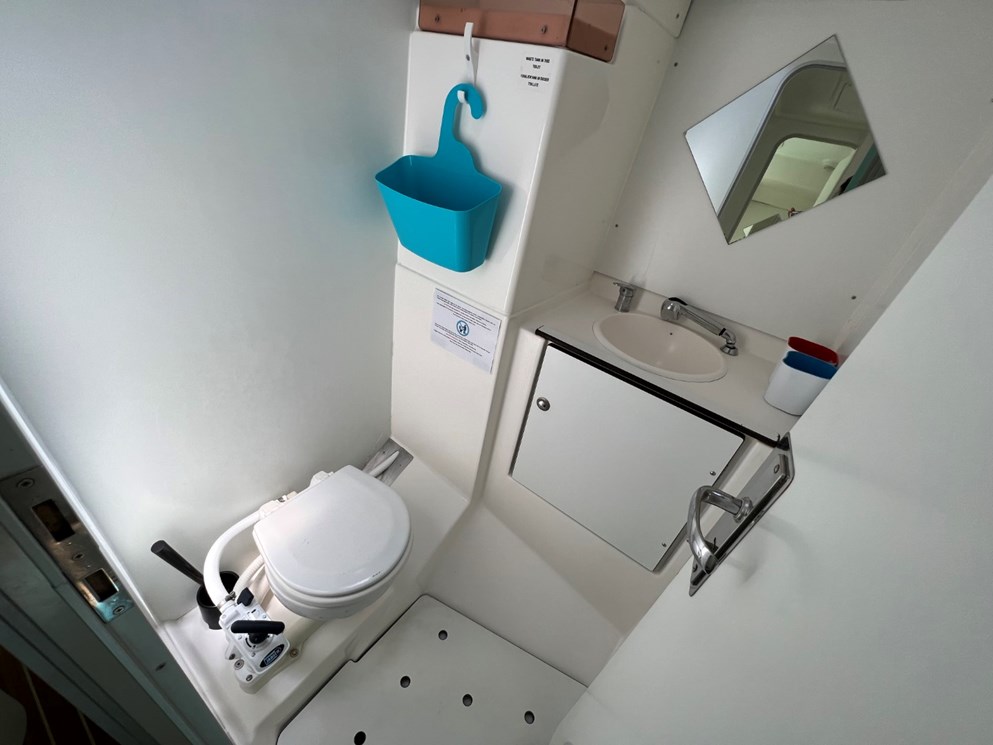 | Larghezza | Pescaggio | Motore | Capacità serbatoio carburante | Capacità acqua | WC/doccia |