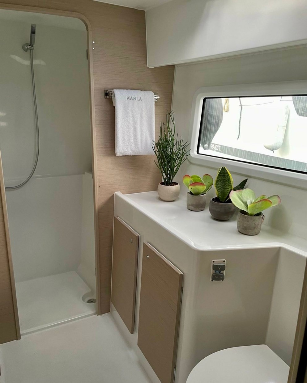 | Larghezza | Pescaggio | Motore | Capacità serbatoio carburante | Capacità acqua | WC/doccia |