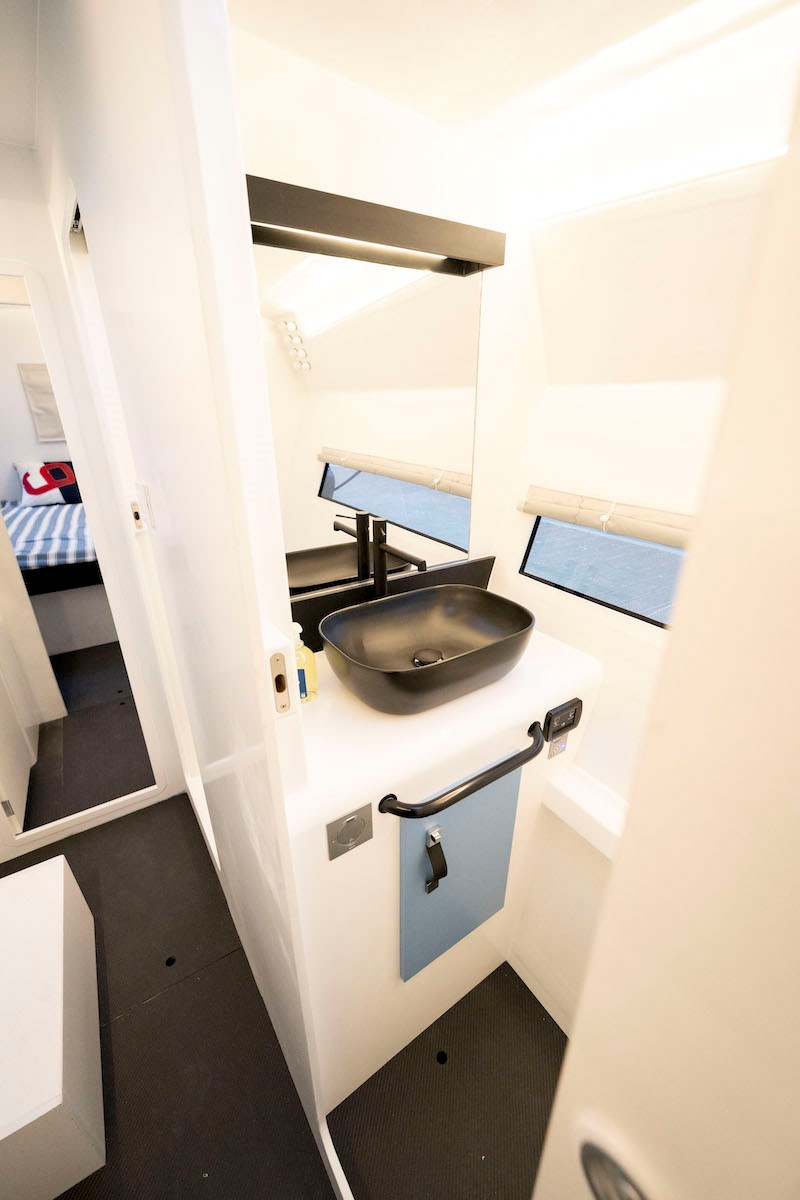 Watermaker Electric heads Satellite phone (1)GPS VHF Navigation software Hot water Fridge Safety equipment Solar Panels Nautical guides and maps Pontoon charger Autopilot Inverter AIS Transmitter / Receiver Electric windlass