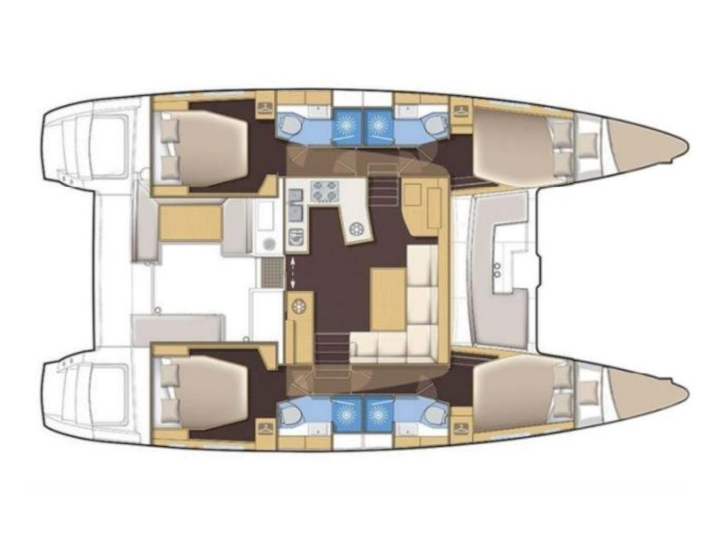 | Larghezza7.96 m | Pescaggio1.15 m | Motore2x57 HP | Capacità serbatoio carburante1040 l | Capacità acqua600 l | WC/doccia4 |